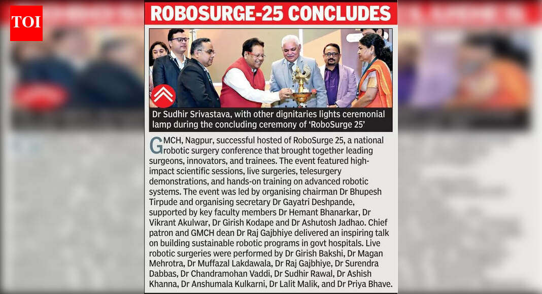 3+ hour, 45+ min ago (264+ words) Nagpur: Robotic surgery will soon become standard of care in India and may replace laparoscopic procedures, said robotic cardiac surgery pioneer Dr Su. Nagpur: Robotic surgery will soon become standard of care in India and may replace laparoscopic procedures, said robotic cardiac surgery pioneer Dr Sudhir Srivastava on Sunday He was keynote speaker at RoboSurge'25 held at GMCH Nagpur, where he was felicitated for his work in advancing robotic cardiac surgery & developing India's first indigenous surgical robot Dr Srivastava has performed more than 1,400 robotic cardiac procedures & trained over 350 surgical teams across the world.For India to lead globally, systematic training is now essential, he stressed Dr Srivastava called for robotic surgery to be included in MBBS curriculum from fourth year, similar to how laparoscopy was integrated earlier Discussions with National Medical Commission & Union health ministry are underway, he said Dr…...